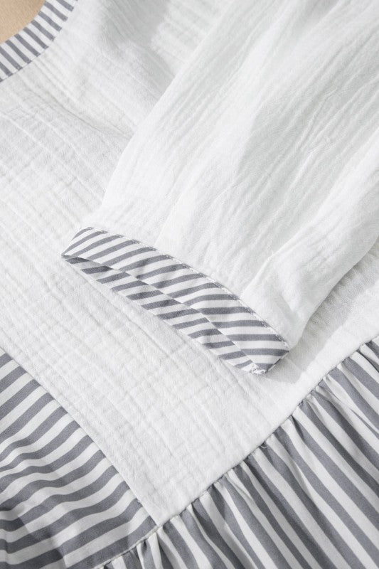 Stripe Gauze Patchwork Half Button Babydoll Blouse